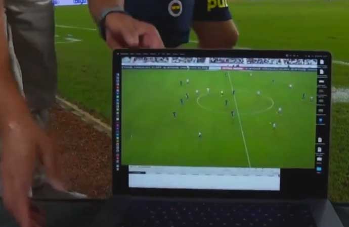 Dzeko’nun attığı golde verilen ofsayt kararında VAR incelemesi olmadan maç başlayınca, Fenerbahçe Teknik Direktörü Jose Mourinho elindeki laptop’unu yayıncı kuruluşun kamerasının önüne koydu.